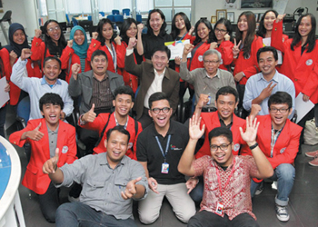 Seremonial penyerahan beasiswa Jawa Pos kepada 46 mahasiswa yang diadakan di kantor Jawa Pos Jakarta, Graha Pena, Kebayoran Lama, 27 Oktober 2014.